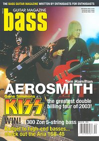 "Bass" Magazines teilen sich Gene Simmons und Tom Hamilton (Aerosmith) das